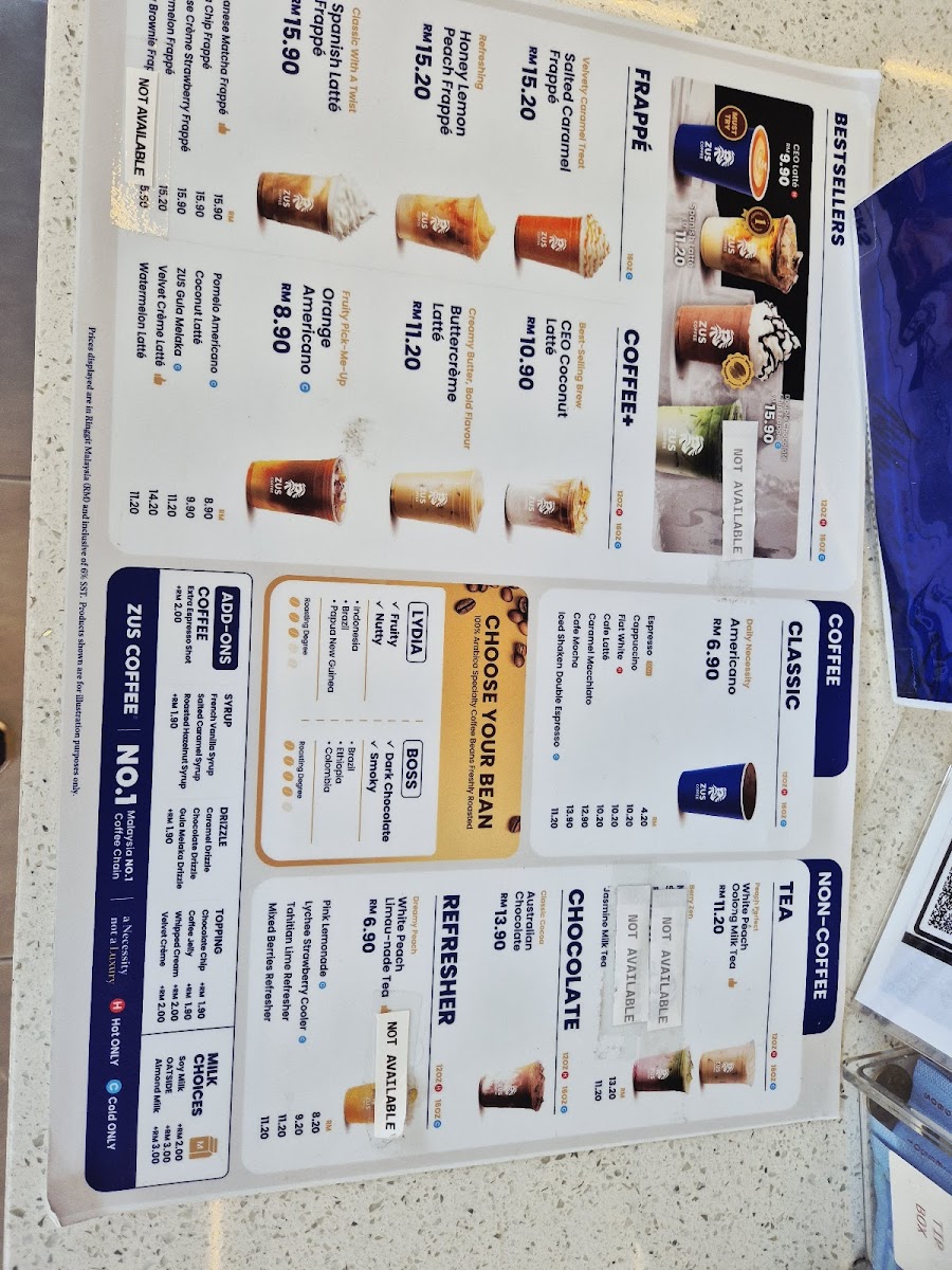 ZUS Coffee - Jalan Masjid Lama, Sarikei Menu